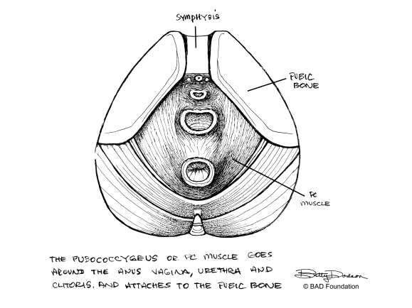 Notice how muscle circles around the clitoris, your vaginal opening and your anus-like an infinity-and the pc muscle like a sling. To engage your pc muscle, insert your finger into your vagina and squeeze. That is your pc muscle. Clitoral stimulation with vaginal penetration(while squeezing and releasing your pc muscle) = multiple orgasms.